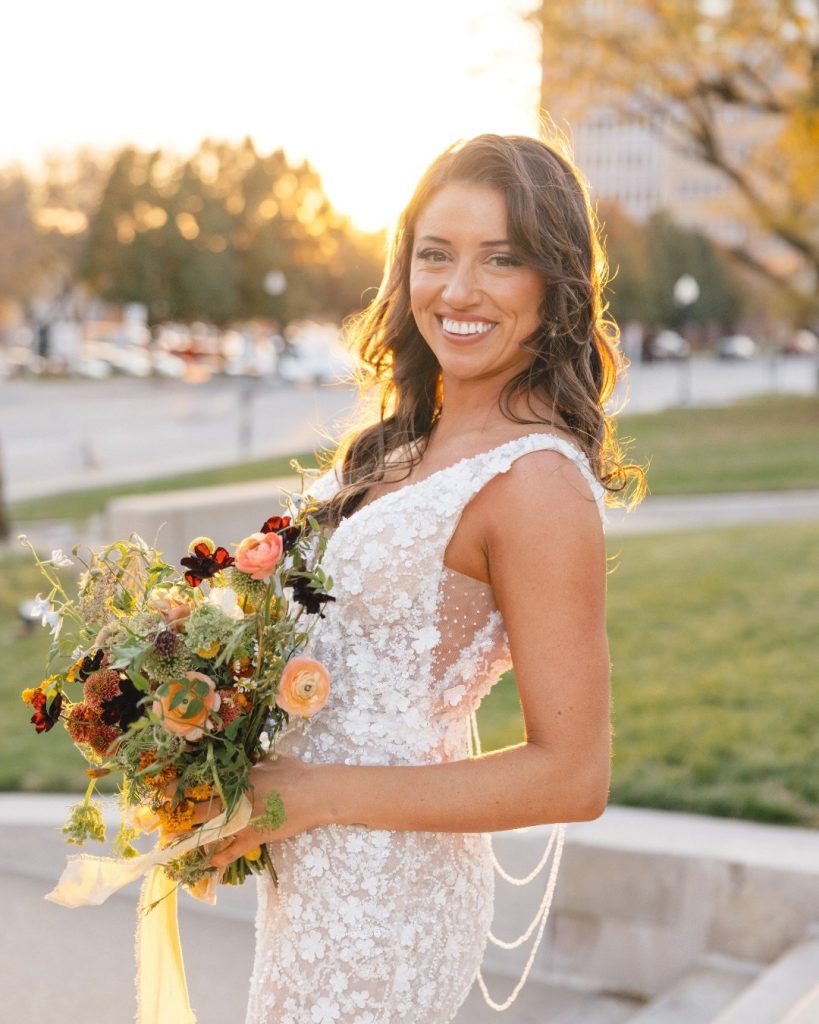 Ally & Riley’s wedding was full of personality. Bold colors, rich textures, and candlelit warmth set the scene, but the real showstopper? The bride’s glam by the talented Salon For Women paired with her stunning gown, glowing in the golden-hour light. Every photo felt like a magazine spread.